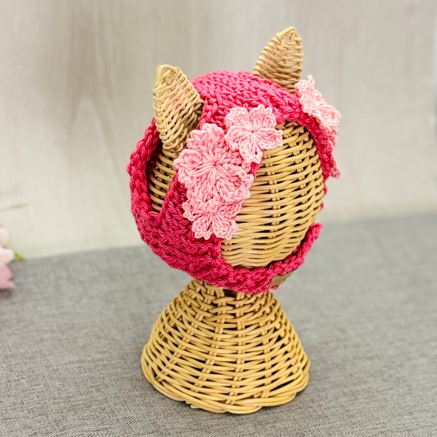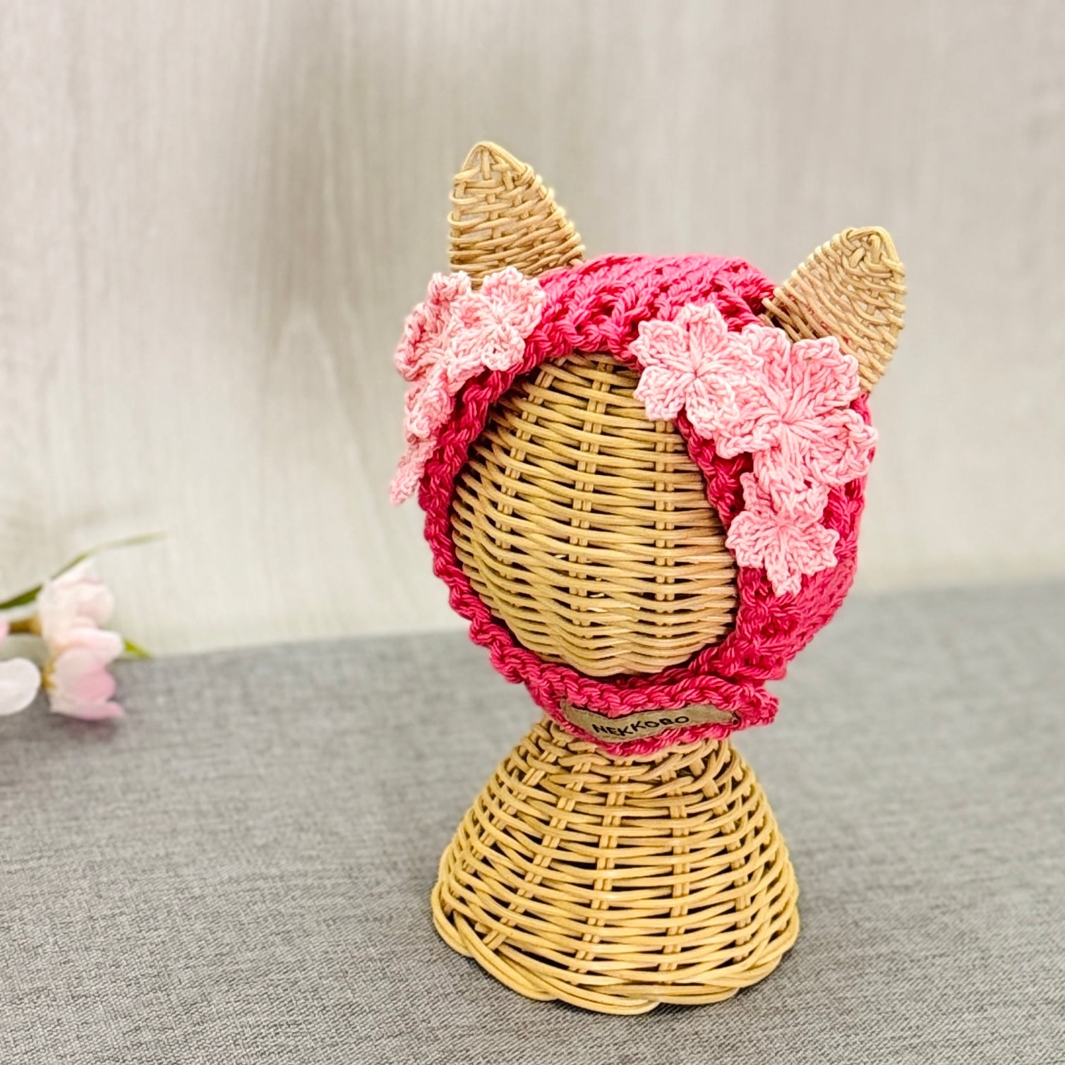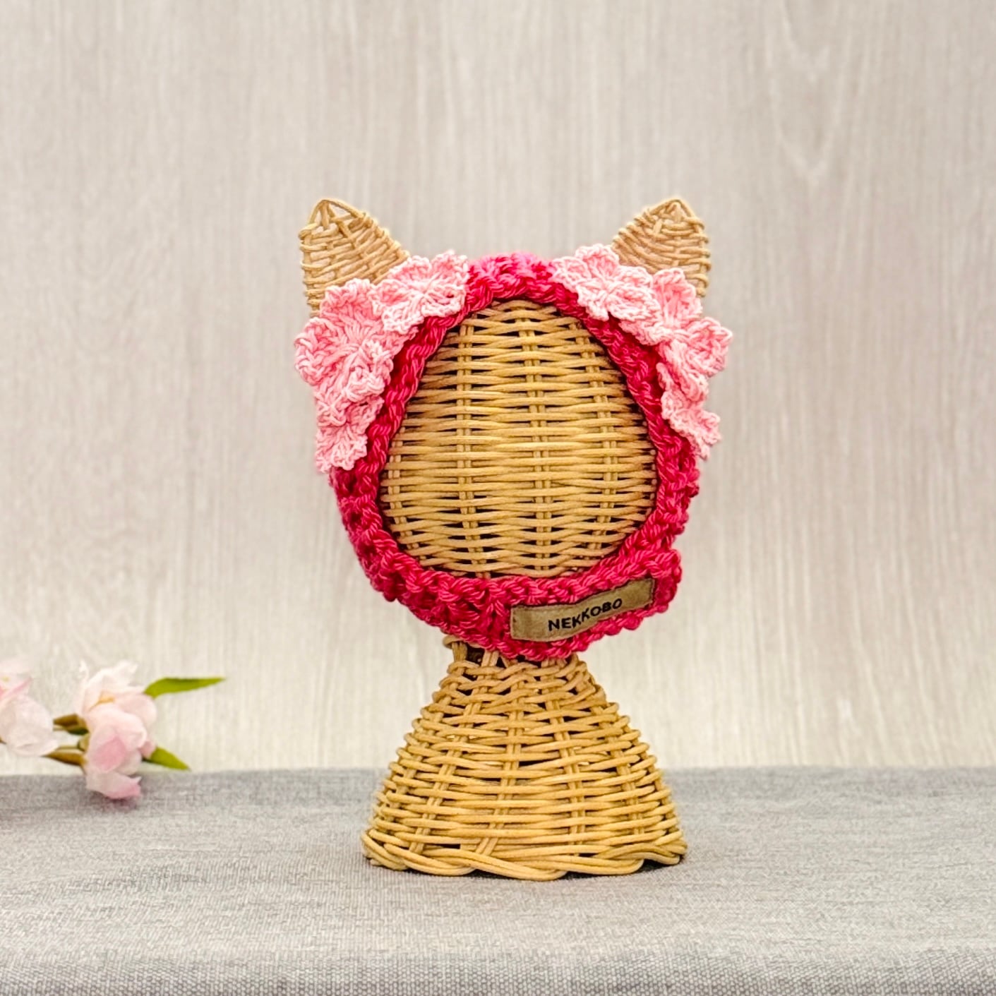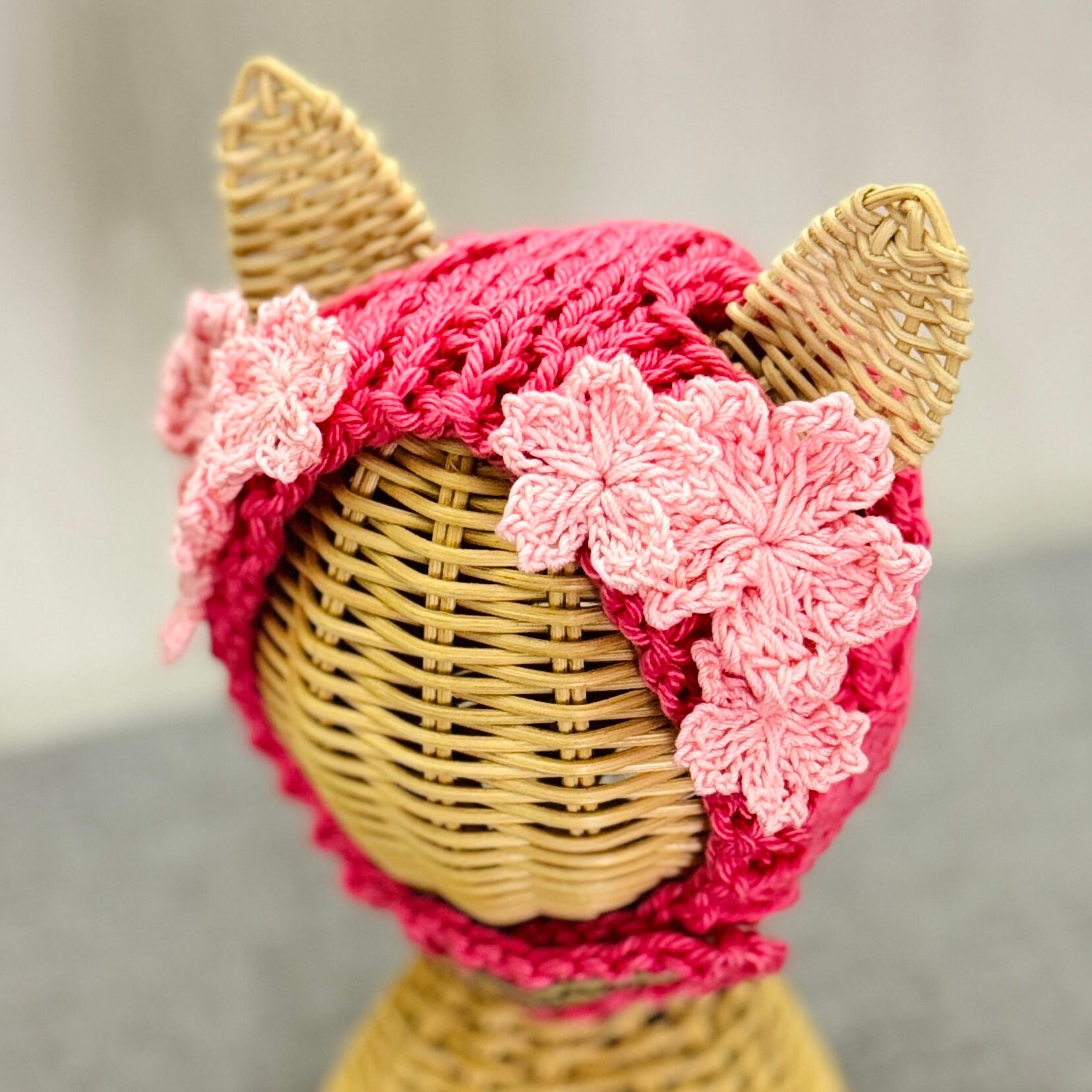 さくら帽子 猫用帽子|ハンドメイドニット帽(受注製作)