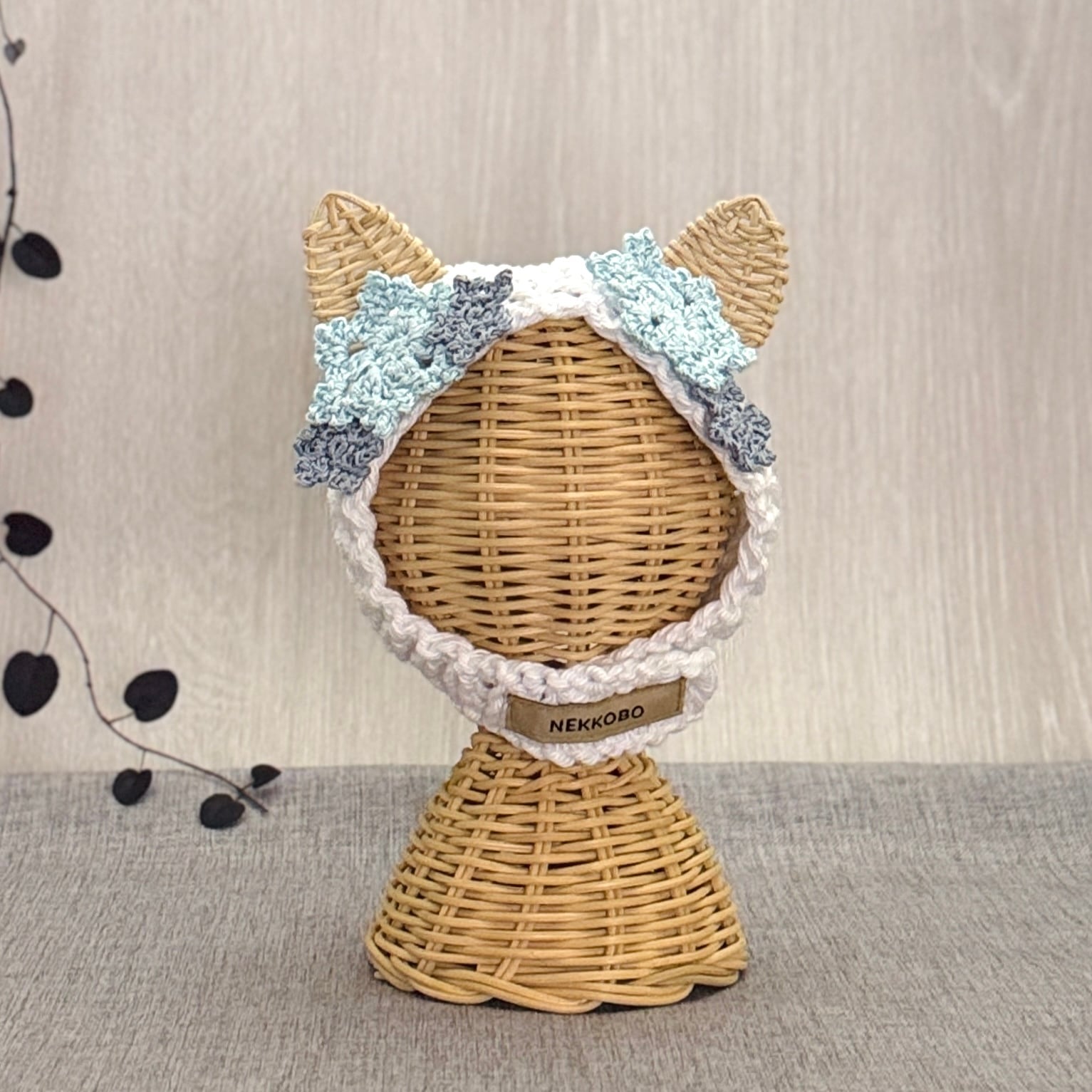 雪の結晶 猫用帽子|ハンドメイドニット帽(受注製作)