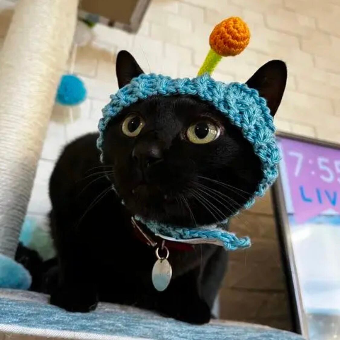 宇宙人 猫用帽子|ハンドメイドニット帽(受注製作)
