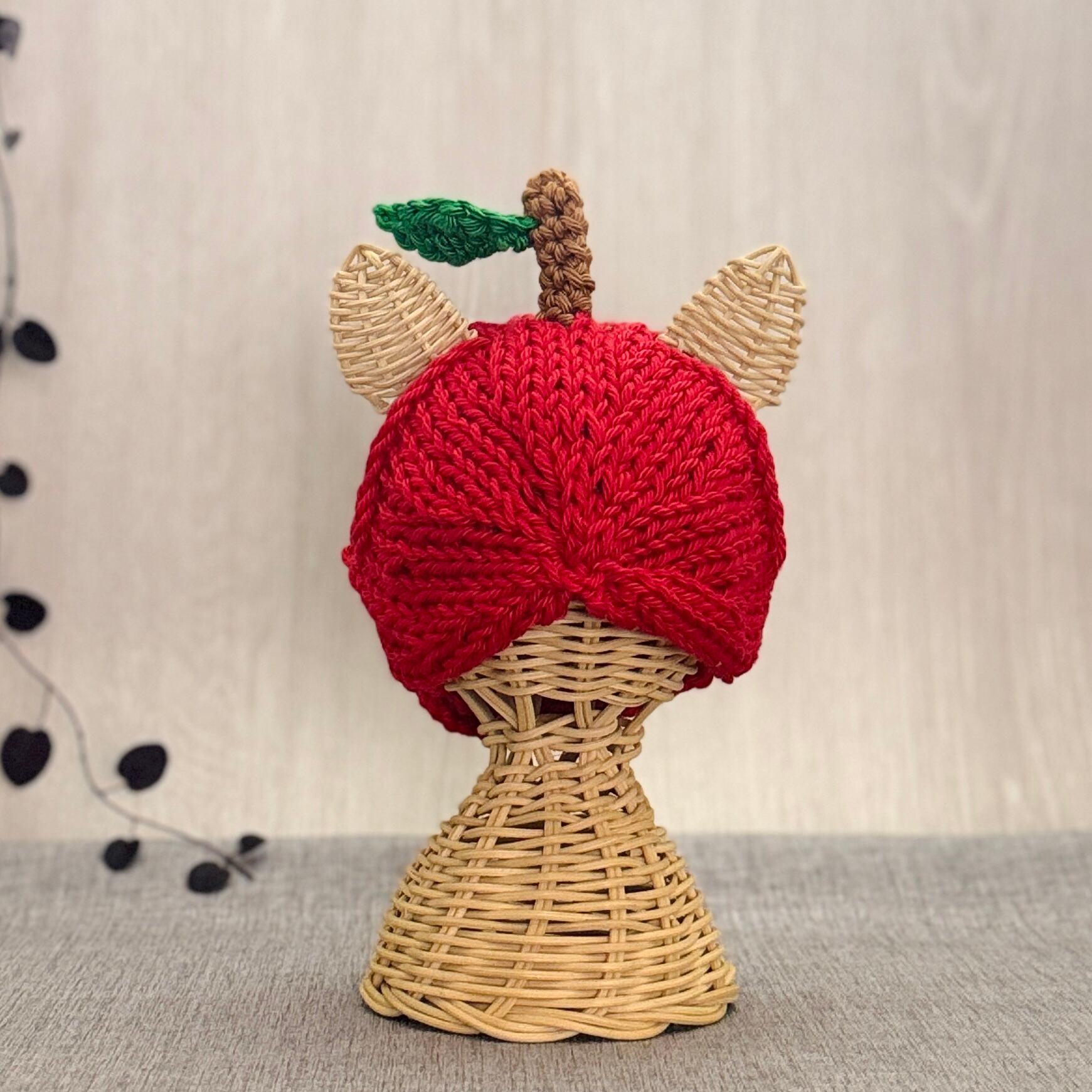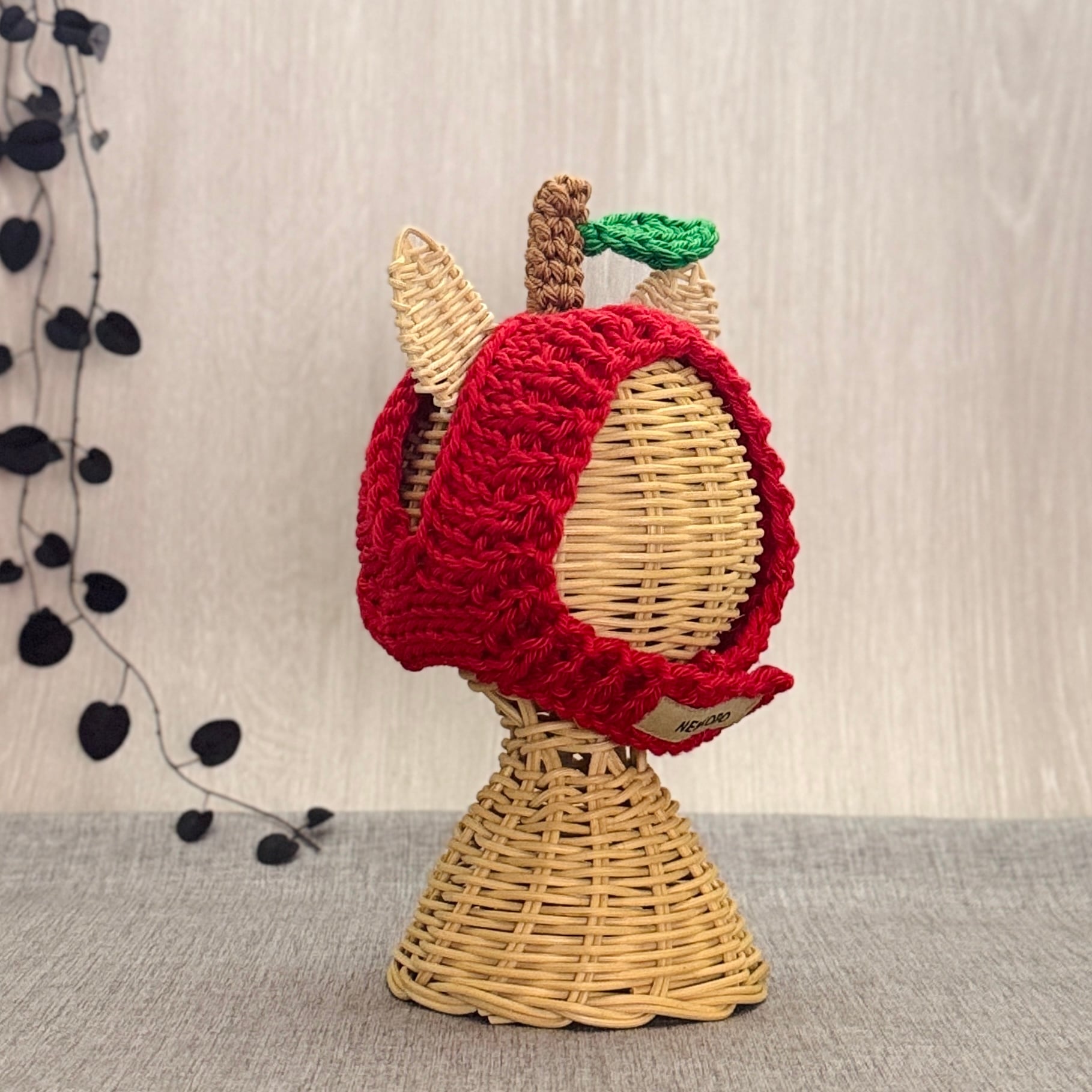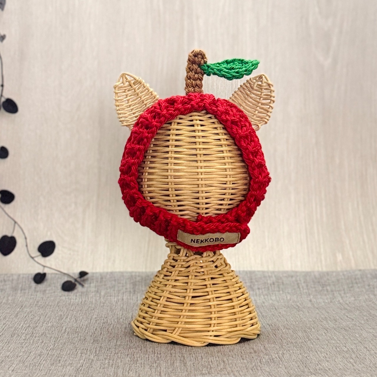 りんごの帽子 猫用帽子|ハンドメイドニット帽(受注製作)