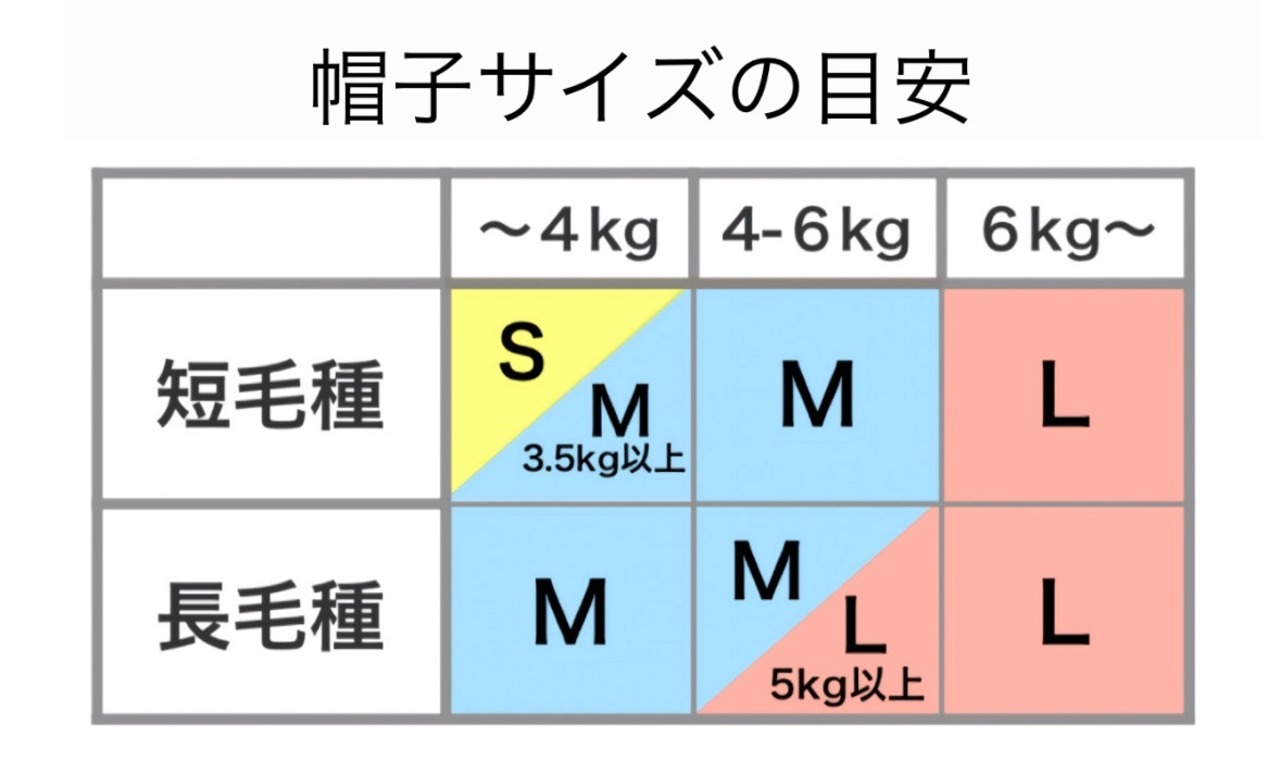 ・L:体重が6kg以上の短毛猫ちゃんや、6kgなくてもアメリカンショートヘアやスコティッシュ、ラグドールなど頭の骨格が大きめの猫ちゃん向け