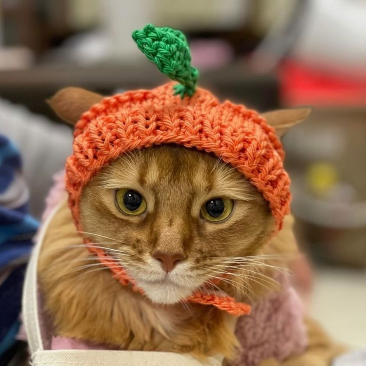 みかんの帽子 猫用帽子|ハンドメイドニット帽(受注製作)