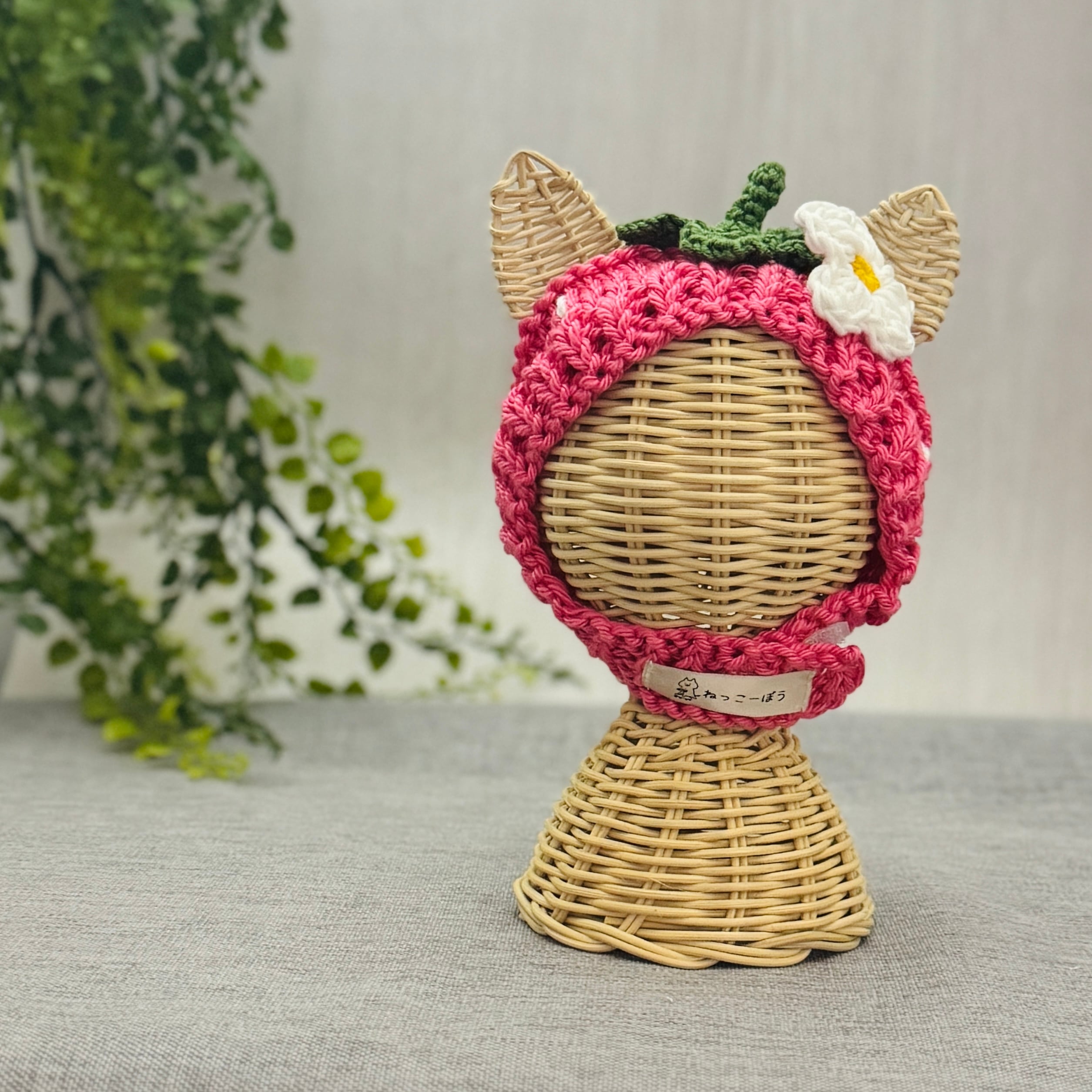 ピンクいちごの帽子 猫用帽子|ハンドメイドニット帽(受注製作)