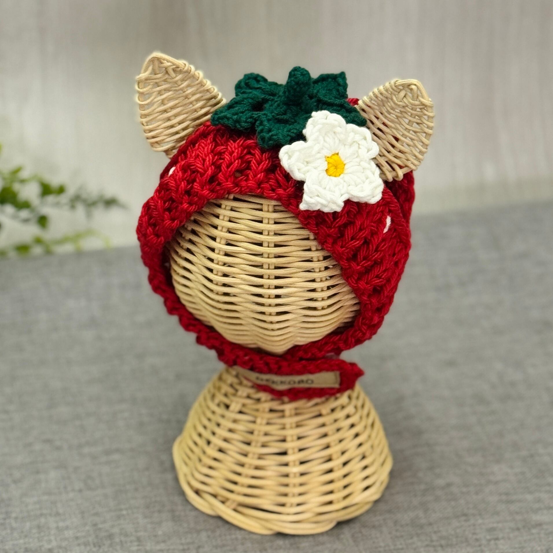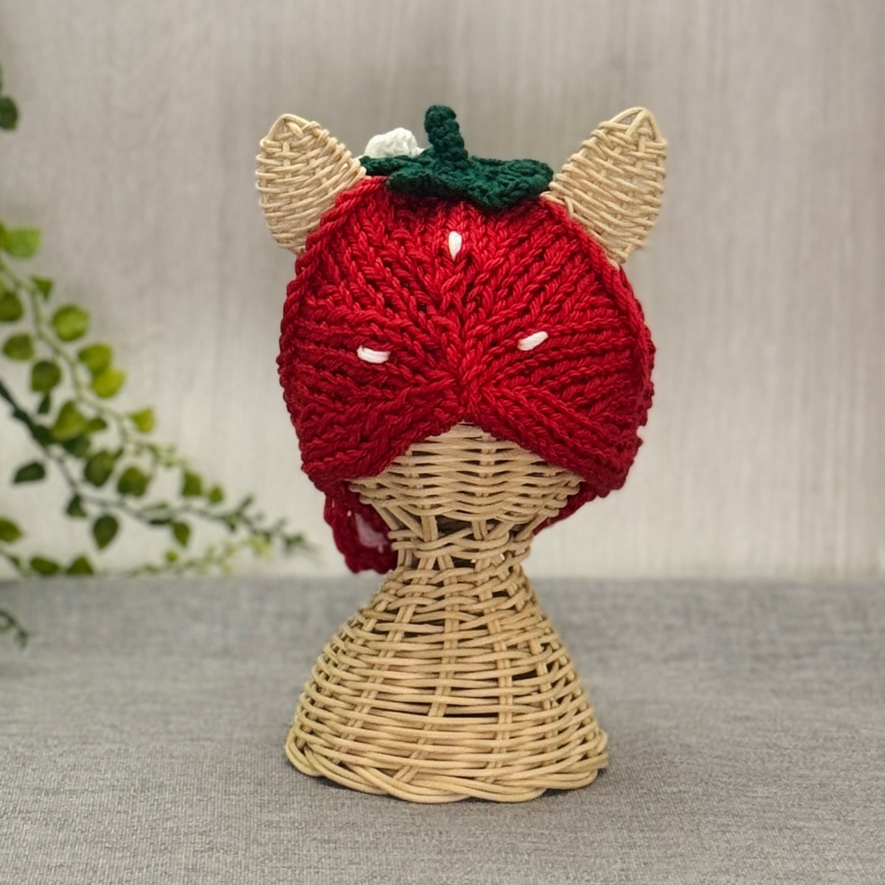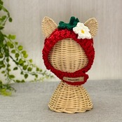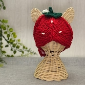 真っ赤ないちご帽子 猫用帽子|ハンドメイドニット帽(受注製作)