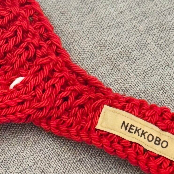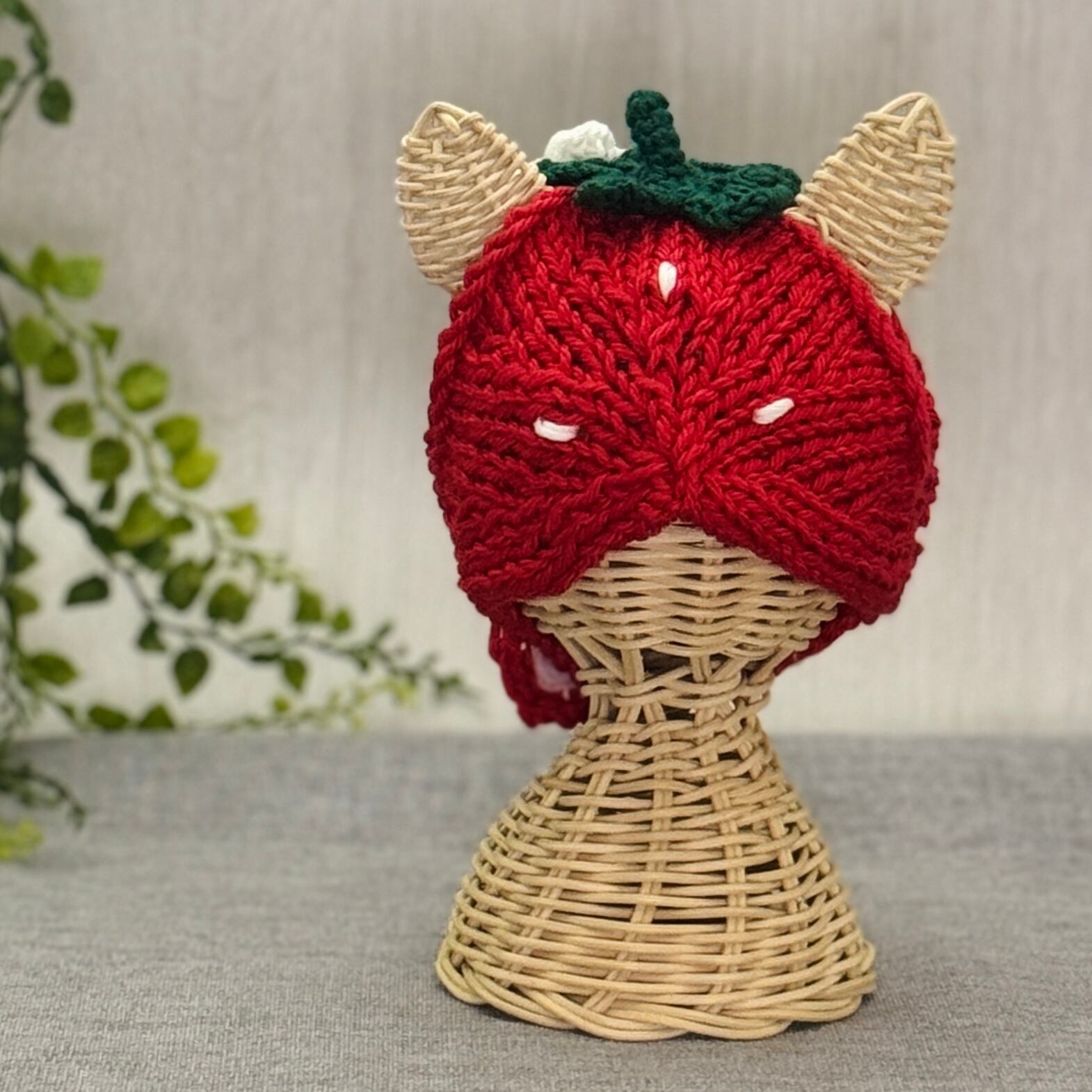 鮮やかな赤い いちごをモチーフにした、元気いっぱいな印象の猫ちゃん用ニット帽。