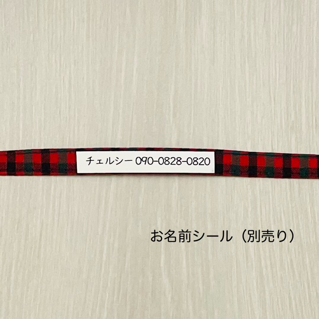 万が一大切な猫ちゃんが迷子になってしまった時に、飼い主さんに連絡が行くように「お名前シール」を首輪の内側に熱圧着いたします。