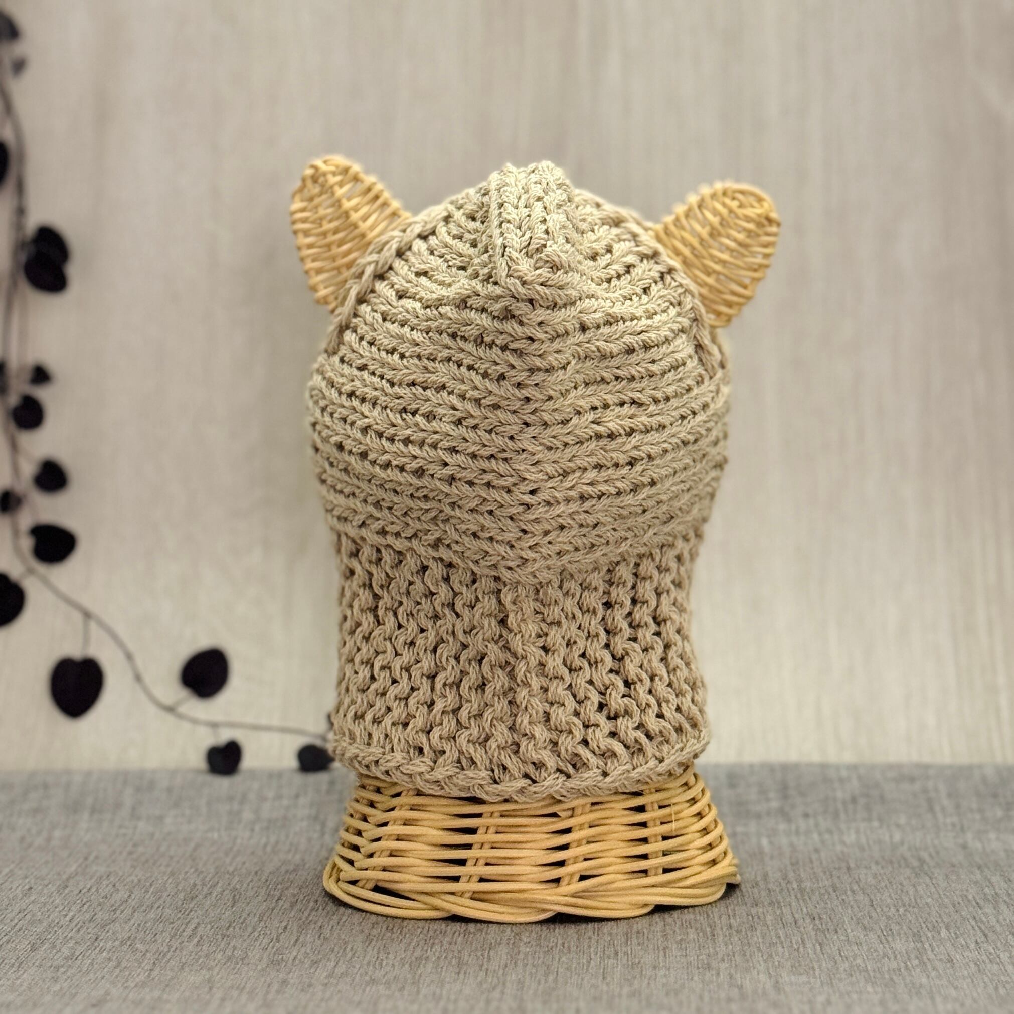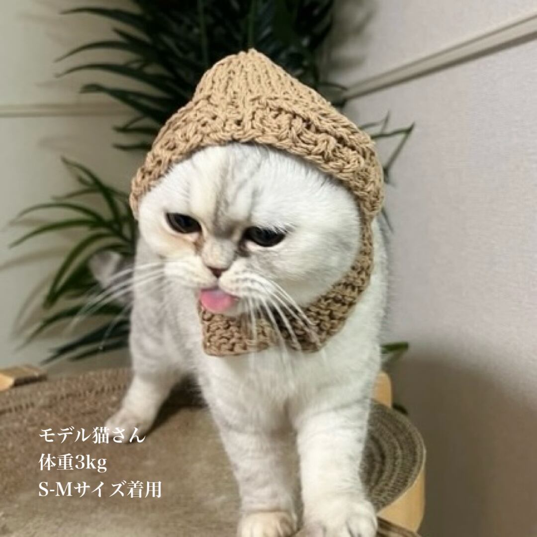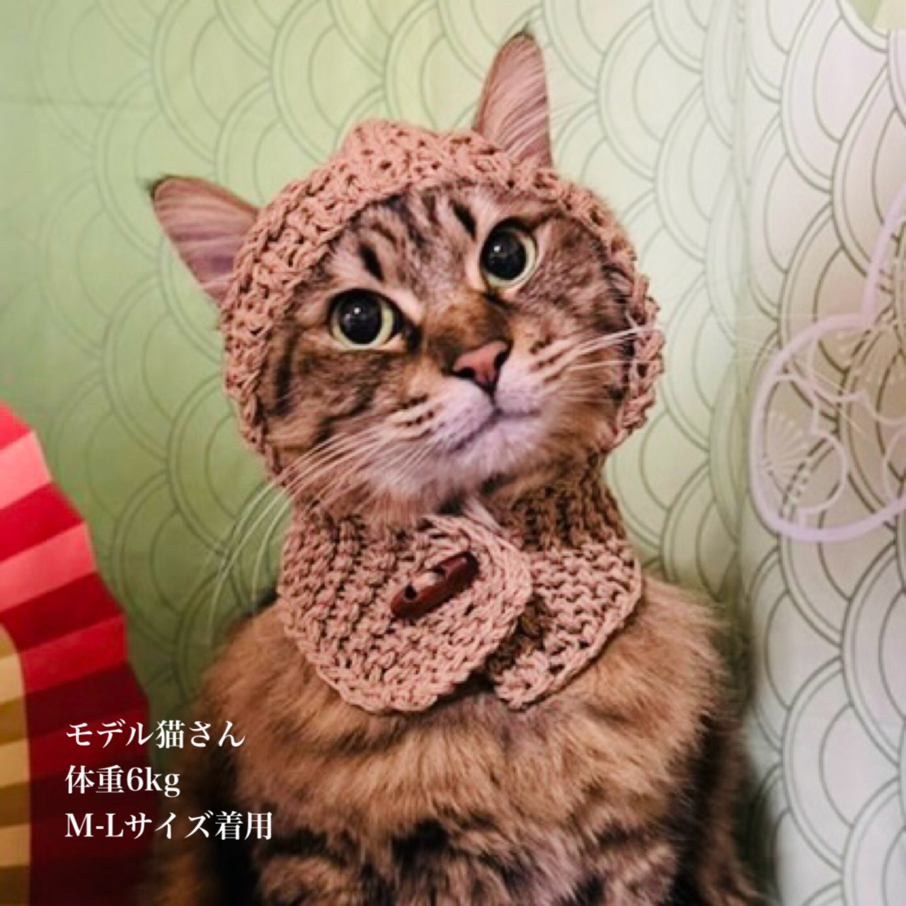 耳がぴょこんと出るデザインが特徴の猫用ずきん